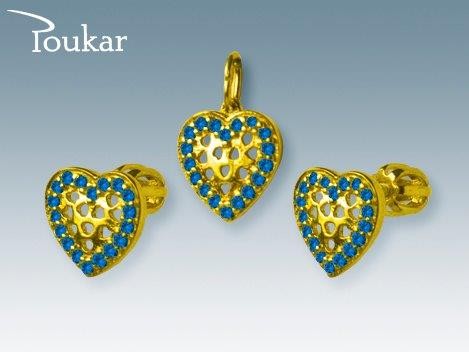 Elegantní souprava ze žlutého zlata ryzosti 585/1000 se zirkonem. Souprava je kvalitní české výroby a zirkony jsou do ní fasovány ručně.  Souprava je k dostání i v barevných variantách růžová, červená, světle modrá a tmavě modrá.