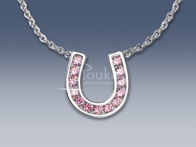 Stříbrný náhrdelník Podkova se zirkony Swarovski - růžový